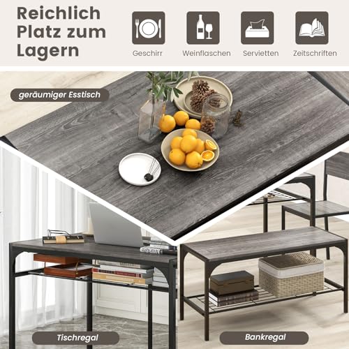 RELAX4LIFE - طقم طاولة طعام من ريلاكس فور لايف غرفة مكونة 4 قطع مع كرسيين جلوس رفين للتخزين بار بإطار معدني بتصميم صناعي مجموعة الطعام للمطبخ رمادي