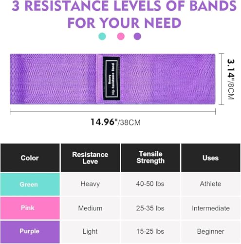 - مجموعة من 3 قطع: تتضمن 3 أحزمة مقاومة بمستويات مقاومة مختلفة بألوان أنيقة (بنفسجي، وردي، وأخضر نعناعي) مثالية لتمارين اللياقة البدنية المتنوعة
