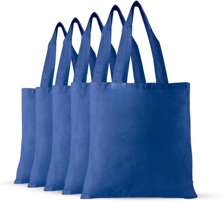 Generic - حقيبة بقالة من القماش القطني قابلة لإعادة الاستخدام، حقيبة حمل قابلة لإعادة الاستخدام مقاس 15 × 16 مع مقبض، عبوة من 3 قطع، أزرق ملكي