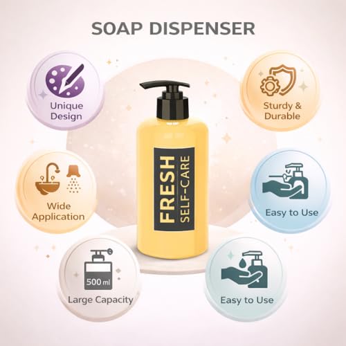 - سعة مثالية 500 مل - حجم مثالي للصابون السائل أو الغسيل اليدوي أو الشامبو أو اللوشن أو المطهر؛ يقلل من إعادة التعبئة المتكررة مع الحفاظ على الحجم الصغير على أسطح المناضد.