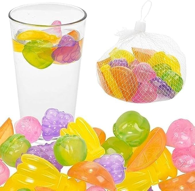• قوالب مكعبات ثلج بلاستيكية قابلة لإعادة الاستخدام ومملوءة بالماء النقي (ألوان متنوعة، عبوة من 10 قطع) (على شكل فاكهة).