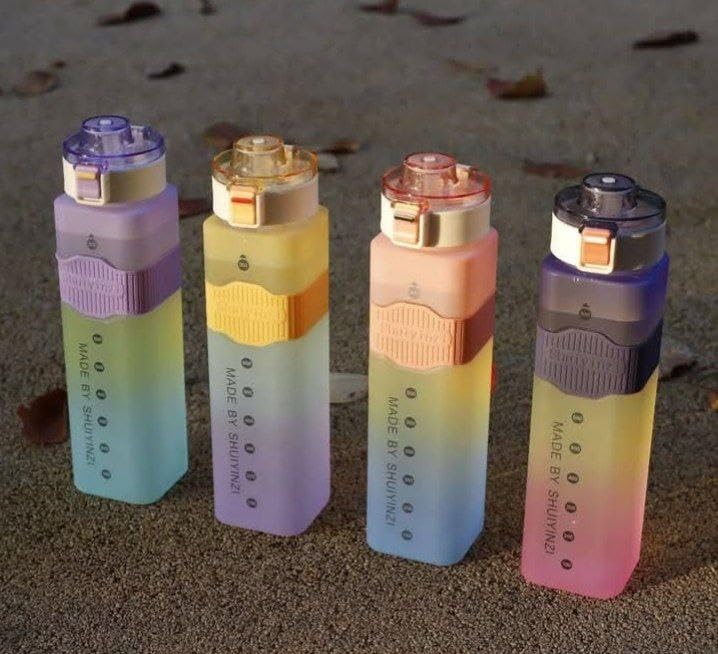 - زجاجة مياه متدرجة: زجاجة مياه بتصميم فريد مع تدرج ألوان قوس قزح وعلامات قياس واضحة للتتبع اليومي