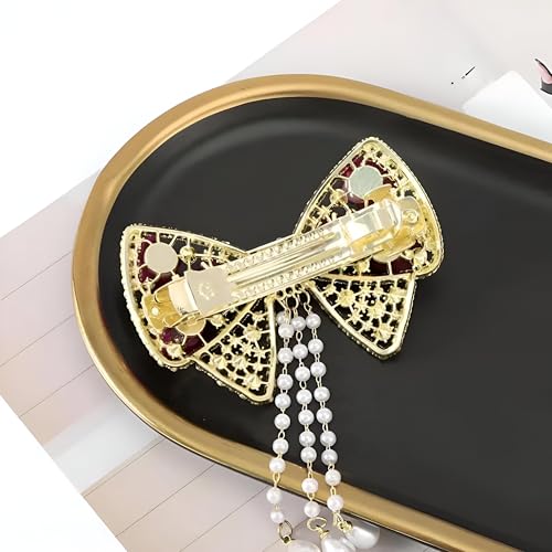 Generic - مشبك شعر على شكل فيونكة مرصع بأحجار الراين بتصميم زهرة لامعة مع شرابة بلؤلؤ صناعي للنساء والفتيات الأنيقات حامل ذيل الحصان غير قابل للانزلاق، للمناسبات الخاصة قطعة واحدة