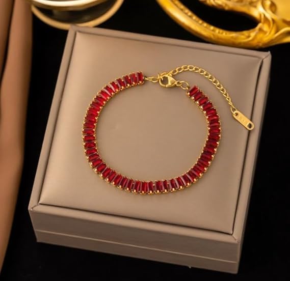 Generic - سوار تنس مقلد روبي أحمر 60 ملم مطلي بالروديوم، للبالغين من الجنسين