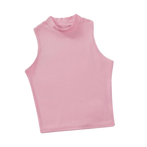 Nileton - بلوزة قصيرة منسوجة مضلعة - توب كات بدون أكمام ورقبة مرتفعة للنساء