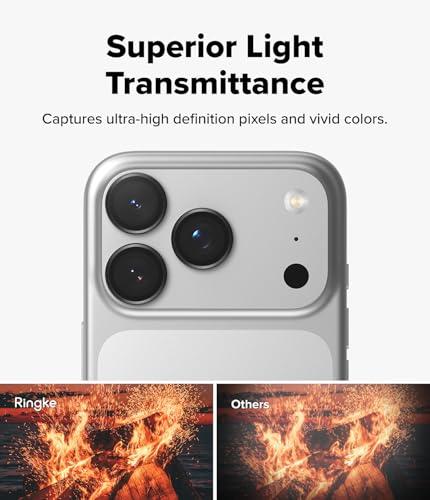 Ringke - رينجكي اطار عدسة كاميرا لموبايل ايفون 17 برو ماكس/ ايفون 17 برو واقي عدسة الكاميرا [عبوتين] [غطاء حلقي معدني فردي] زجاج مقوى شفاف عالي الدقة مقاوم للخدش بدرجة صلابة 9