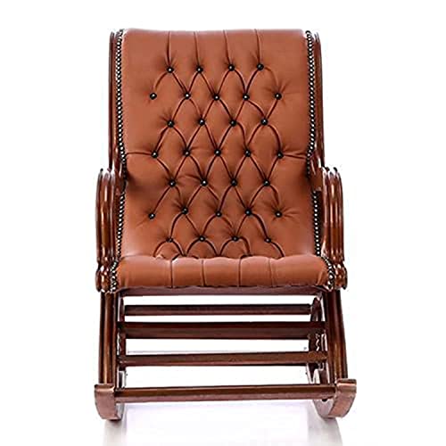 Generic - كرسى هزاز خشب زان جلد هافان، بني