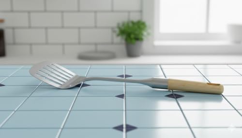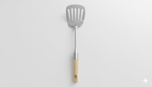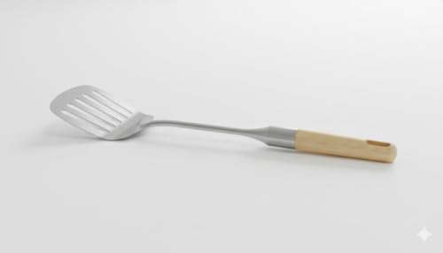 ROCKY, - ملعقة مشقوقة من الستانلس ستيل مقاس 18/10 بمقبض خشبي 40 سم من روكي T-1034