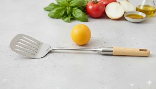 - رأس مشقوق من الستانلس ستيل 18/10 مع مقبض خشبي 40 سم للتصريف أثناء تقديم الخضروات أو المعكرونة بكفاءة.