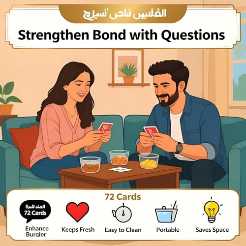 - تحتوي المجموعة الشاملة على 72 بطاقة أسئلة تغطي مواضيع متنوعة من التفضيلات الشخصية إلى النقاشات الحميمة، مما يساعد الأزواج على اكتشاف جوانب جديدة من بعضهم البعض.