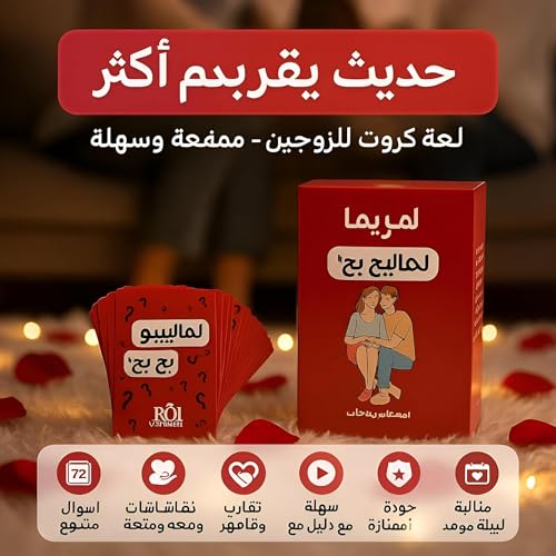 - تحتوي كل بطاقة على أسئلة مدروسة تشجع على الحوار الهادف وتعميق التواصل العاطفي بين الشريكين.