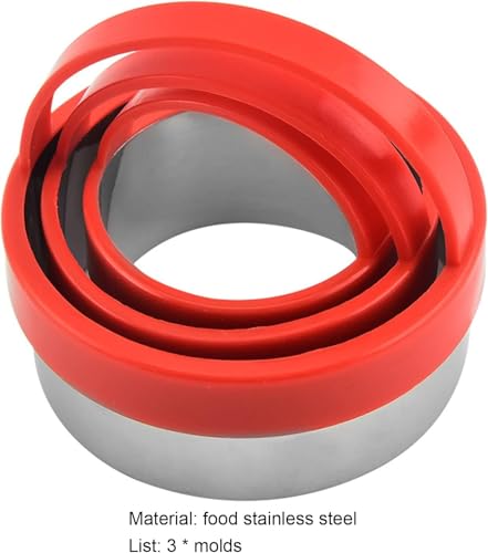 • مجموعة متعددة الاستخدامات: تتضمن 3 قوالب حلقات متداخلة مصنوعة من الستانلس ستيل الآمن غذائيًا مع حواف مقبض سيليكون حمراء لسهولة التعامل وخيارات مقاسات متعددة
