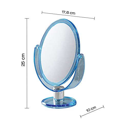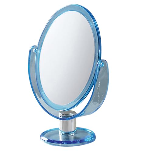 Generic - مراية مكياج مستديرة - تثبت على سطح الطاولة - للحمام - طاولة التسريحة - الحلاقة - الصالونات -مزدوجة الاوجة - رؤية طبيعية - ورؤية مكبرة 15مرات -تتميز بتصميم دوار 360 درجة -لون (ازرق شفاف)