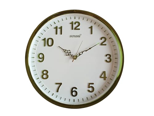 - ساعة حائط دائرية ارقام بارزة عصرية تناظرية موفرة للبطارية ملف كهربائي كبير اللون اخضر عقرب ذهبي مقاس 33 في 33 سم