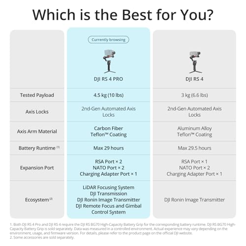 - يتميز مثبت الكاميرا RS برو من دي جي اي بالميزات القوية لسلسلة رونين، وهو عبارة عن منصة متطورة وشاملة لتوسيع الكاميرا تعزز قدرات مصوري الفيديو وتوفر حلول تصوير منسقة للأطقم الاحترافية.
