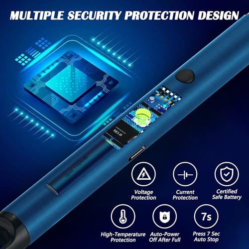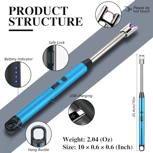 RSBYE - ولاعة شموع بلازما كهربائية قابلة لإعادة الشحن بمنفذ USB نوع سي مقاومة للرياح بدون لهب من ار اس بي واي اي، ولاعة إلكترونية طويلة للشواء مع مفتاح أمان مزدوج للطبخ والطهي المنزلي (أزرق)