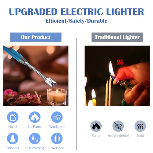 - 🔥 🔥 【رقبة مرنة أطول وخفيفة الوزن】 يمكن ضبط طول الولاعة الكهربائية الطويلة 360 درجة بحرية، يمكنك بسهولة إضاءة الشمعة في الزجاجة العميقة وكذلك الرائحة. تسمح لك الرقبة الطويلة والمرنة بالحفاظ على مسافة آمنة بشكل أفضل من قوس الولاعة، مما يحمي سلامة المستخدم. حجم خفيف الوزن، مناسب للاستخدام اليومي في الأماكن المغلقة أو الهواء الطلق.