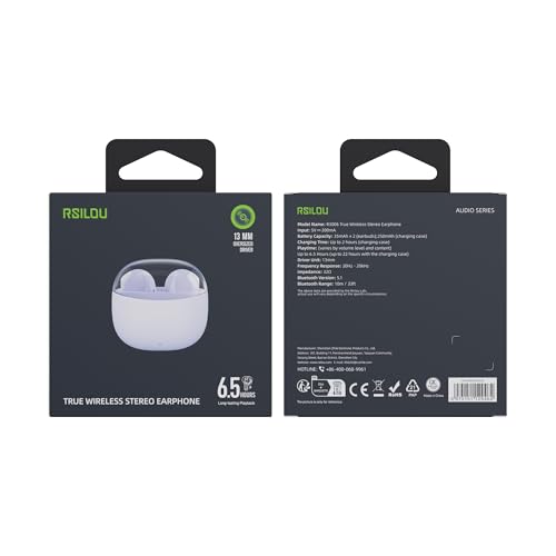 rsilou - سماعات أذن ستيريو لاسلكية بتقنية البلوتوث وتقنية ترو وايرلس ستيريو مع شحن سريع وتشغيل 6.5 ساعات، علبة صغيرة بطابع فضائي، معايرة خصيصًا لمؤثرات صوتية ثلاثية الأبعاد غامرة R3006 من ريسيلو (أرجواني)