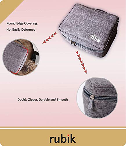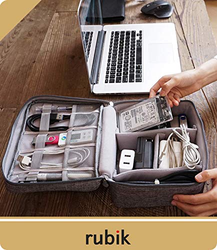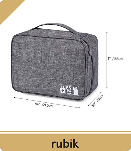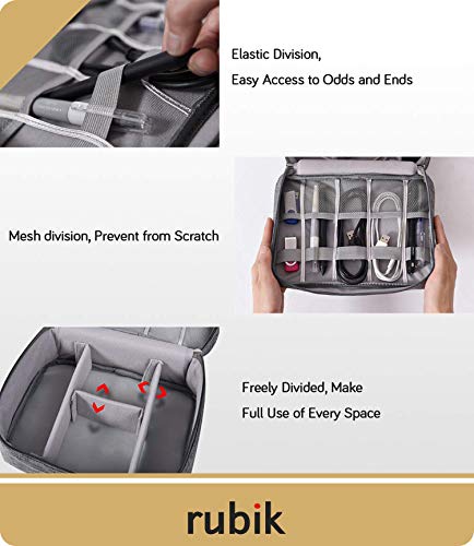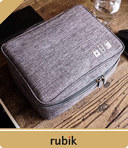 Rubik - شنطة حمل مضادة للماء لتنظيم الالكترونيات من روبيك - شنطة تخزين ملحقات السفر العالمية للشاحن والكيبلات وسماعات الاذن وايباد ميني والجوال وبطاقة SD والباور بانك - رمادي، ميش