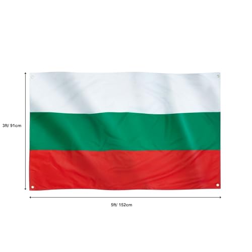 Runesol - علم بلغاريا من رونيسول، 91 × 52 سم، 3 قدم × 5 قدم، 4 حلقات، علم بلغاري، علم بلغاري، اعلام فاخرة، داخلي، خارجي، الوان زاهية