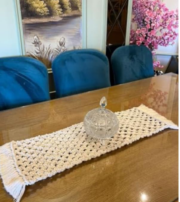 Generic - رنر خيوط مكرميه مستوردة بشراشيب رنر مكرميه مقاس 100*45 رنر مكرميه