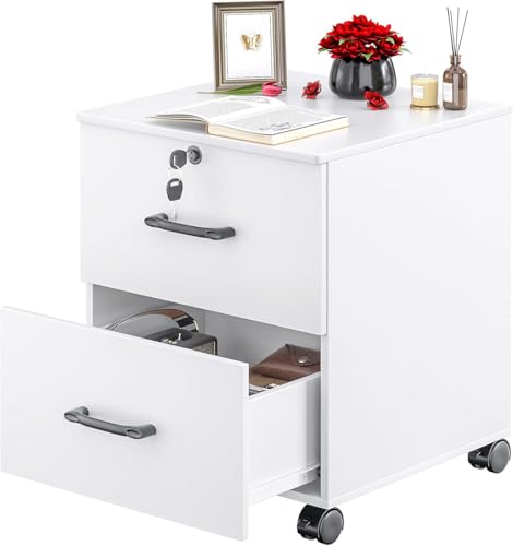 RWDSDWT - خزانة ملفات مع مفتاح متحرك من ار دبليو دي اس دي دبليو تي، خزانة ملفات منظمة للمكتب مع قفل ووسادة، خزانة ملفات مكتب صغيرة للاستوديو المكتبي، ابيض