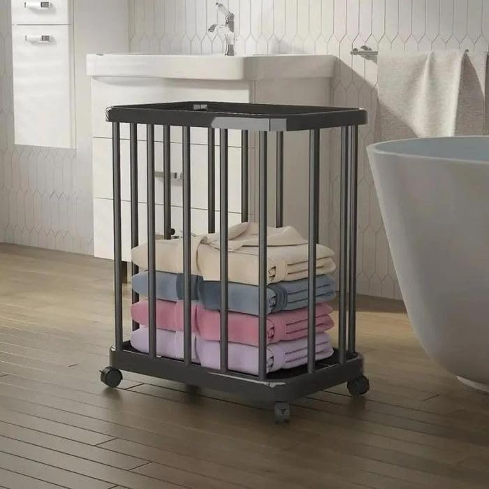 Generic - باسكت غسيل متعدد الاستخدامات مزود بعجلات – سلة عملية لنقل الملابس بسهولة داخل المنزل – تصميم عملى للاستخدام اليومى S