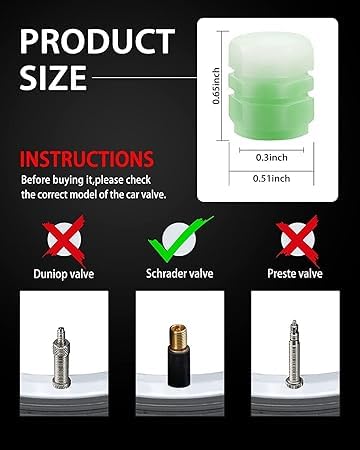 • 【مادة باعثة للضوء】أغطية صمام إطار عجلات السيارة مصنوعة من مادة ايه بي اس المضيئة. إنها مقاومة للماء والغبار وفي نفس الوقت تمنح سيارتك مظهرًا فريدًا وفاخرًا مع ضوء مبهر جميل. غطاء التاكيهات فلورسنت، لذلك يُرجى وضعه في مكان مشمس لفترة قبل الاستخدام وسوف يتوهج في الليل.