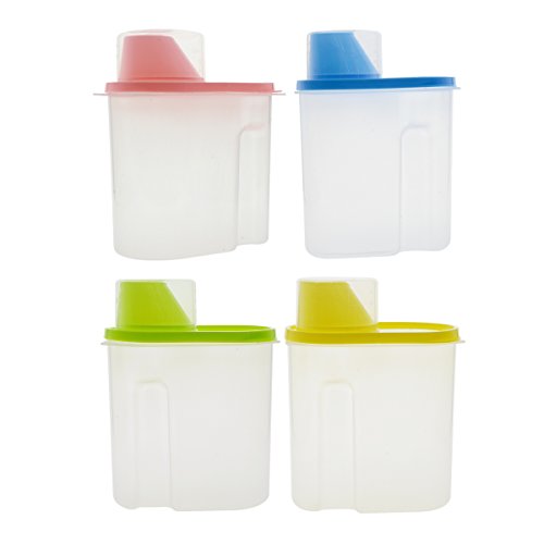 Saim - علب تخزين حبوب من البلاستيك بفوهة سكب وغطاء محكم مانع للهواء والمياه مع كوب معيار لحفظ الطعام وتخزين الارز والحبوب والشوفان والسكر والمكسرات سايم - قطعتين بلون شفاف 2.5 لتر 4 قطع