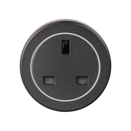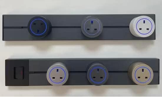 - التصميم: مقبس كهربائي بريطاني مع إضاءة ليلية، مصمم للتركيب على مسار مغناطيسي بلون أسود أنيق