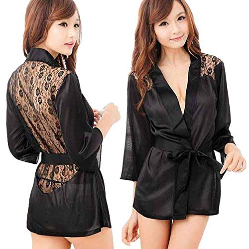 Other - لانجيري تنكري من الستان، بيجامات، ملابس نوم داخلية روب وحزام جي سترينج - مقاس Large