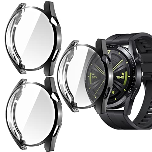 sciuU - مجموعة جراب حماية مصنوع من بولي يوريثين حراري مرن كامل باطار ناعم مقاوم للصدمات مع شاشة يناسب ساعة جي تي 3 الذكية مقاس 46 ملم لون اسود مكونة قطع سكيو لساعات ذكية