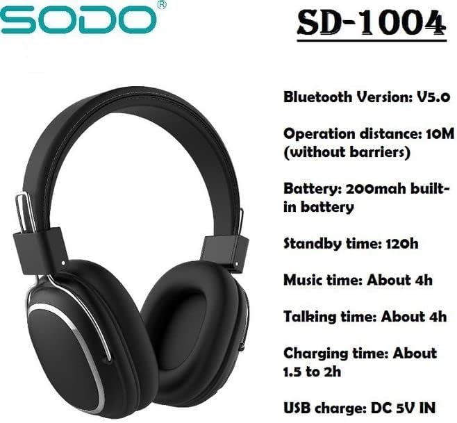 Generic - سماعة راس سلكية سلكية SD-1004 بورن تو ميوزيك مدمجة للمشي والتحدث - سماعات راس رمادية