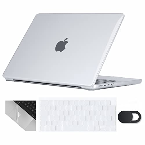 Se7enline - سيفين لاين جراب حماية صلب كريستالي متوافق مع ماك بوك برو 14 بوصة 2021 لجهاز ماك برو 14 بوصة M1 برو/ماكس موديل A2442 وغطاء واقي للوحة المفاتيح وكاميرا الويب وواقي لوحة اللمس، شفاف، بولي كربونات