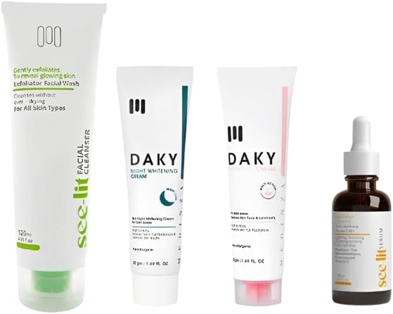 • روتين كامل للعناية بالبشرة في مجموعة واحدة: يشمل غسول الوجه من سي-ليت، وكريم التبييض الليلي من داكي، فيتامين سي من سي-ليت، وكريم داكي للمناطق الحساسة، لتوفير حل عناية متكامل للعناية بالبشرة.