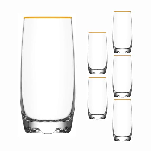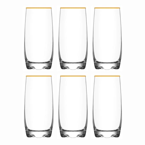 • زجاج هاي بول دايموند من سيجاي / حافة ذهبية / 6 قطع / 390 سم مكعب - 364 مل / تصميم أنيق، علامة تجارية موثوقة، شكل جذاب من الماء، مشروب فوار، عصائر / مواد عالية الجودة.