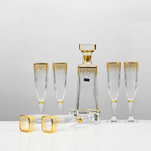 - ساربات تركي من سيجاي مع كوب بوهيمي بأوراق جور اوريزو ذهبية / 8 قطع / 250 سم مكعب و1000 سم مكعب / تصميم أنيق، علامة تجارية موثوقة، شكل جذاب للمياه والمشروبات الغازية والعصائر والكوكتيلات