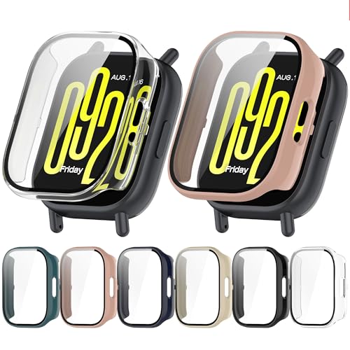 SEIAIYG - جراب حماية متوافق مع ساعة شاومي ريدمي 5 اكتيف، غطاء حماية صلب فائق الوضوح من البولي كربونات مع شاشة حماية من سيايج، لون شفاف