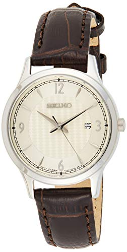 Seiko - ساعة عصرية للنساء SXDG95 بسوار جلد ياباني من سيكو، فضي