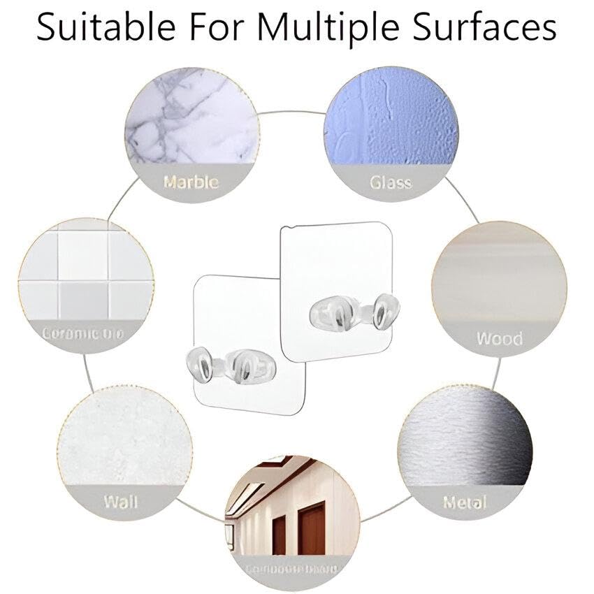 - تصميم محكم مقاوم للماء: تتميز الخطافات اللاصقة الشفافة بتصميم مقاوم للماء يضمن المتانة، حتى في البيئات الرطبة. تحافظ على قبضتها دون أن تسقط، مما يجعلها مثالية للحمامات والمطابخ حيث يمكن أن تكون الرطوبة مصدر قلق.