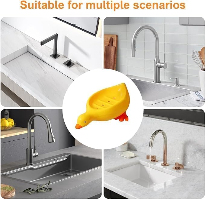 • ميم فريد للغاية: يتميز طبق الصابون البلاستيكي هذا بتصميم فريد ومميز للغاية يضيف لمسة من الأناقة والأناقة إلى منزلك. لا يبدو شكل البطة اللطيف جيدًا فحسب، بل يخدم أيضًا غرضًا مفيدًا في تخزين لوح الصابون.
