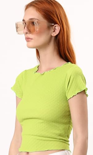 Ravin - بلوزة صيفي بكم قصير بنمط ذاتي ونقشة بلون الليمون