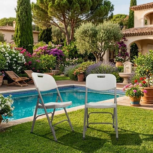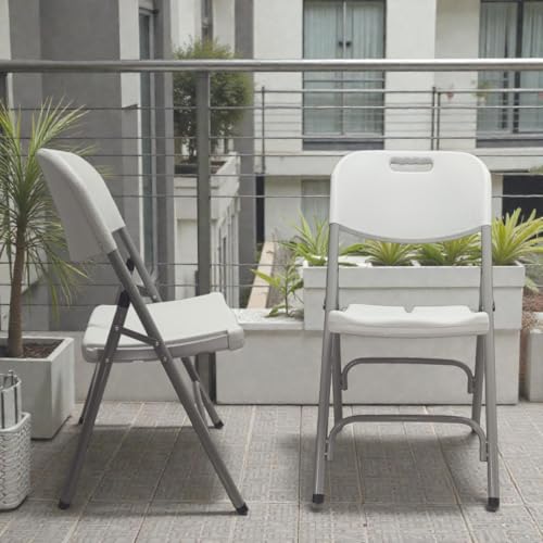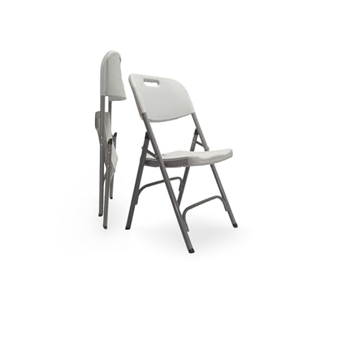 Generic - مجموعة من 2 كرسي محمول قابل للطي يتميز باطار ستيل شديد التحمل ومقعد مريح مع مسند ظهر، بلمسة نهائية باللون الرمادي الفاتح