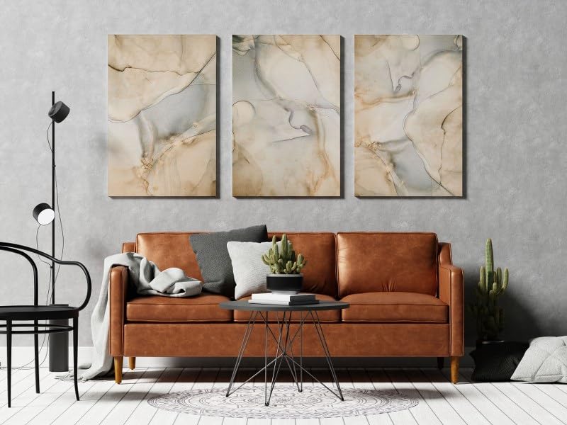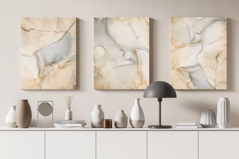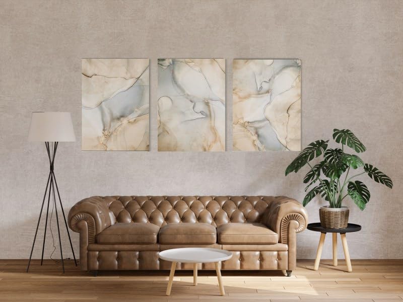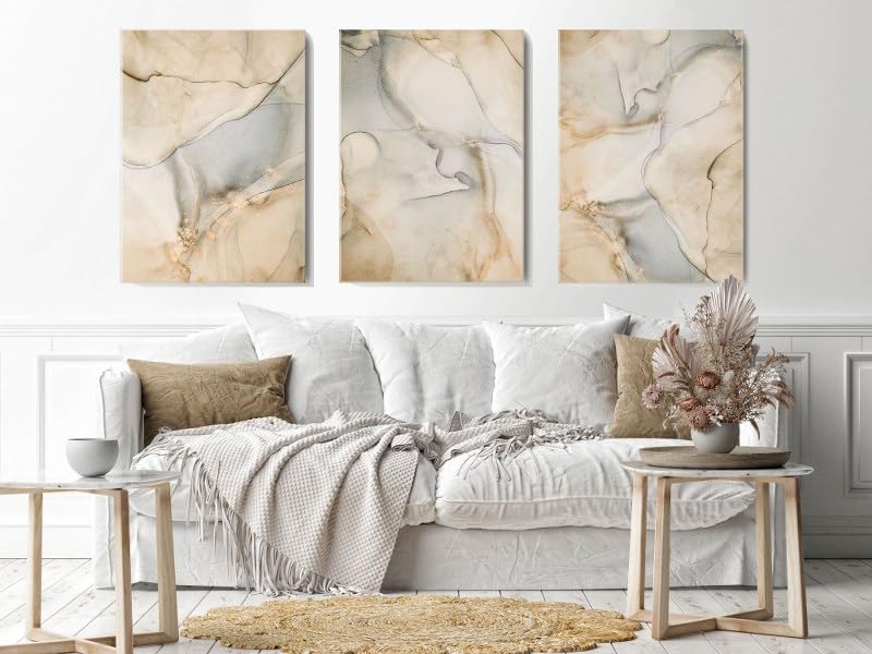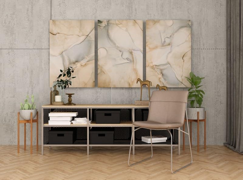 Home Gallery - تابلوه حائط بنمط رخامي مزين بشريط ذهبي، مجموعة من 3 قطع، أبيض وذهبي، 90×60