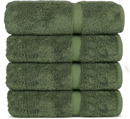Generic - طقم 4 فوط حمام -حجم كبير - خامة قطن 100% والوان زاهية وثابتة (زيتي)