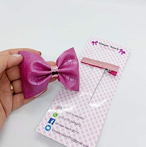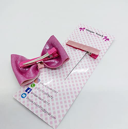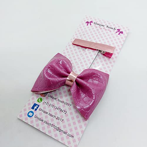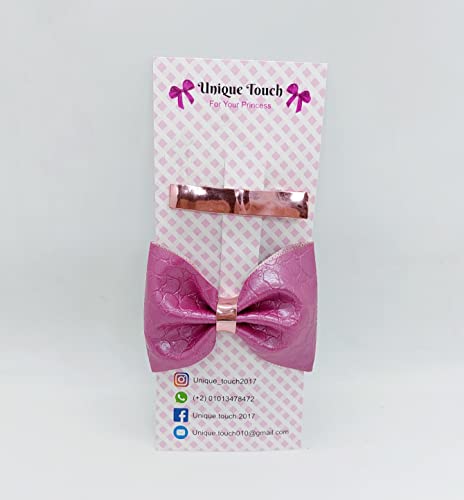 Generic - مجموعة مشابك شعر لامعة وفيونكة من الجلد المطبوع (بينك)