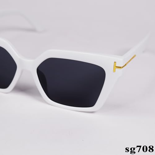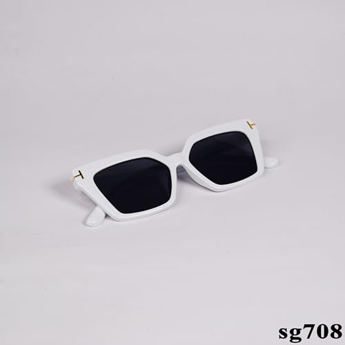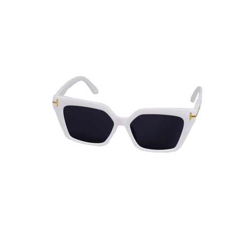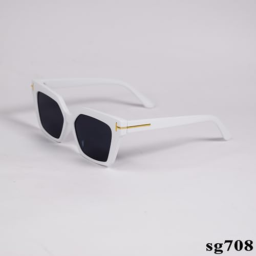 Generic - نظارة شمسية مستطيلة الشكل باطار ابيض وعدسات سوداء sg708