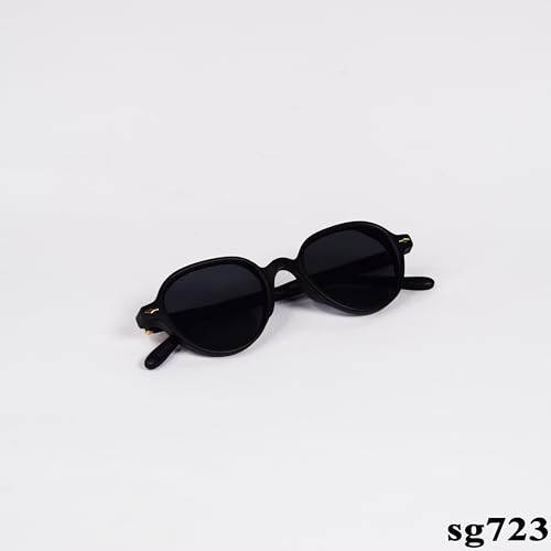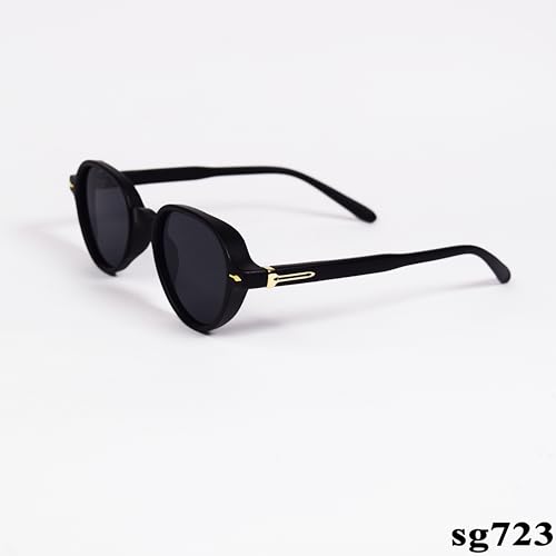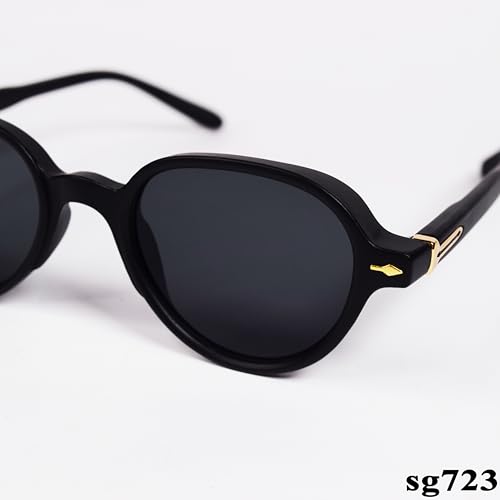 Generic - نظارة شمسية دائرية ريترو باطار اسود وحماية 100% من الاشعة فوق البنفسجية sg723