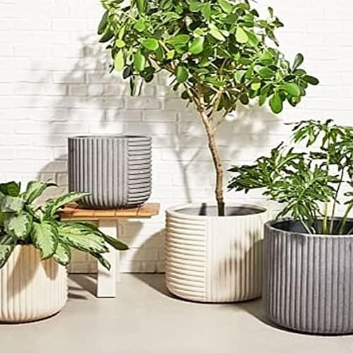 SHAHEEN FAROUK DESIGNS - اصيص زراعة نباتات مزخرف من حجر البوليستر من شاهين فاروق ديزاينز، مخصص للمكاتب وتزيين المنزل والحديقة، (العرض 30 × الارتفاع 30) - لون رمادي