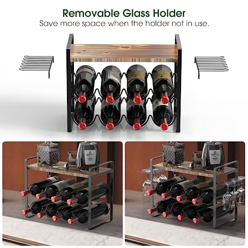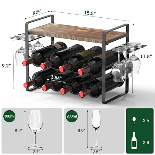 - 【رف تخزين النبيذ متعدد الوظائف】يمكن لرف النبيذ هذا تخزين ما يصل إلى 8 زجاجات نبيذ ذات حجم قياسي. يمكن لحامل أكواب النبيذ على كلا الجانبين تخزين 4 إلى 6 أكواب نبيذ رأسًا على عقب لإبقائها خالية من الغبار وجاهزة للتقديم. يمكن استخدام الرف العلوي كلوح تخزين أو منصة عرض لأغراضك المفضلة.
